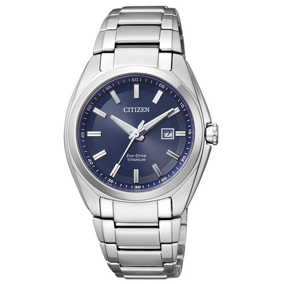 Time only watch WITH case in Super-Titanium (5 times resistant to normal titanium 40% light steel) shiny and satin, screw back. Eco-Drive quartz movement with light charge with 8-month power reserve