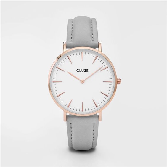 Quartz watch, only time with metal case diameter 38 mm rosy finish, mineral glass and leather strap