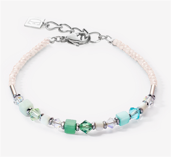 CDL GEOCUBE BRILLIANT SQUARE GREEN-BLU BRACELET SILVER