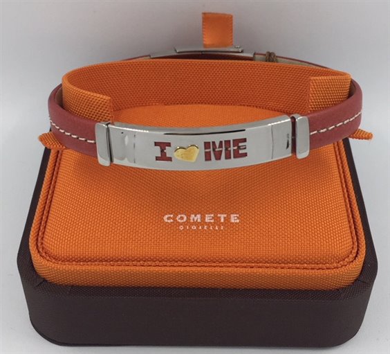 RED LEATHER BRACELET WITH STAINLESS STEEL AND HEART IN GOLD 750%