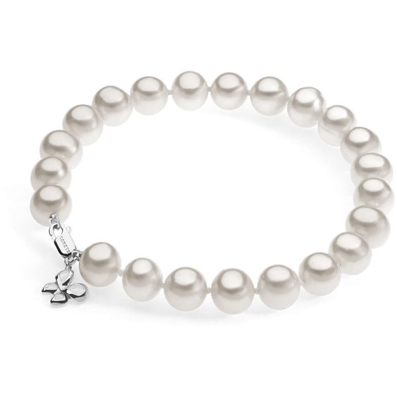 Comete bracelet in 750% gold with cultivated pearls of 8 / 8.5mm diameter. Beautiful bracelet of pearls signed Enzo Miccio with lobster clasp embellished with a gold butterfly. The pearls of this bracelet will frame your movements and give your moments a touch of timeless beauty.