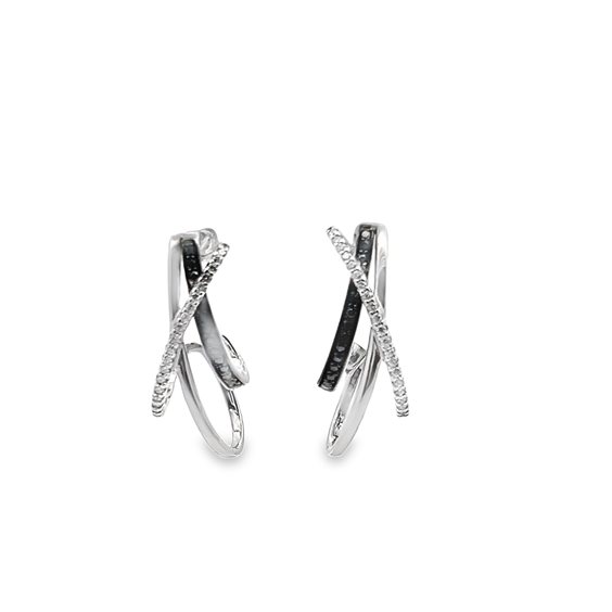 White gold earring with black and white siamese. Fantasy. Diamonds P.ct 0.21 G SI. Diamonds P.ct 0.15.