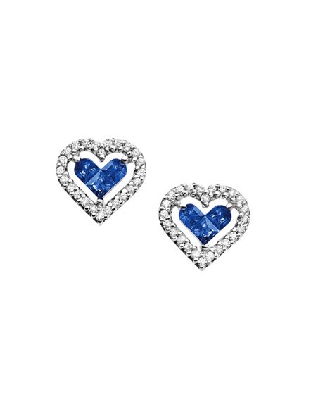 Diamond earring and sapphire earring. Fantasy heart height 1 cm wide 0.9 cm.