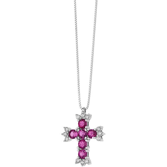 Color Fantasy Collection Comete Woman Necklace. Gold Necklace 750 ‰ With Diamonds With Carature Point 12, Color G And Purity Yes And Rubies With Carat Point 0.54