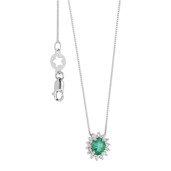 Necklace Comete Woman Regina in White Gold Smeraldo 0.09 Ct GLB1569