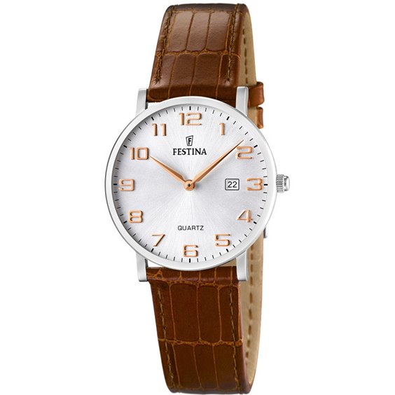 Clock Only Time 2/3 Balls Woman Festina Collection Classic Correa. Model With Round Shape Steel Case, Diameter 30 Mm, And Indexes With Painted Arabic Numbers. This watch has a leather strap. The Resistance To Water Is 3 Atm And The Movement Is M9T15. The reference is F16477 / 2