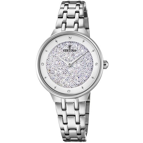 Ladies Only Time Clock From Festina Collection Mademoiselle. Model With Round Shape Steel Case and Swarovsky Dial. Watch With Steel Bracelet, Movement Mgl26 And A Water Resistance Of 5 Atmospheres.