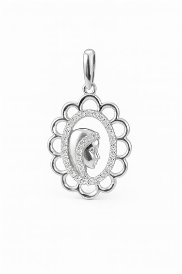 18 kt White Gold Unisex Charm with Zircons – 2.10 g – Idee Preziose dal 1987 A refined pendant rich in symbolic meaning, crafted in 18 kt white gold and adorned with brilliant-cut white zircons that enhance its luminous beauty. The oval frame with a stylized Madonna profile surrounded by delicate petal motifs conveys devotion and elegance, making it suitable for both men and women. A perfect gift of faith, light, and timeless Italian craftsmanship. Material: 18 kt white gold Stones: Brilliant-cut white zircons Weight: 2.10 g Gender: Unisex Brand: Idee Preziose dal 1987 Style: Classic religious Occasions: Baptism, communion, anniversary, symbolic gift A charm that radiates faith and elegance — a timeless symbol of devotion and artisanal excellence.