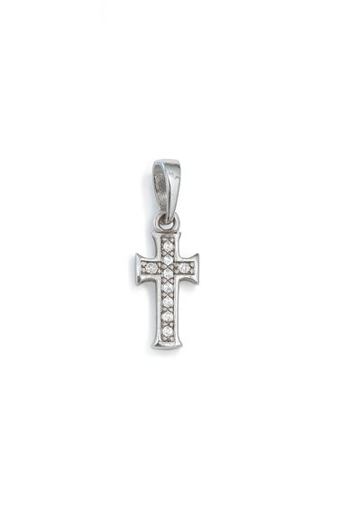 Women's pendant in 18K white gold with cubic zirconia – 1.00 g – Idee Preziose since 1987 A timeless symbol with a delicate twist: this cross-shaped pendant in 18K white gold is adorned with a line of sparkling cubic zirconia that radiates elegance. The softly contoured and slightly raised design gives it a refined yet solid character, perfect for daily wear or meaningful occasions. Material: 18K white gold Stones: White cubic zirconia Weight: 1.00 g Gender: Woman Style: Raised classic cross Occasions: Communion, confirmation, anniversary, meaningful gift A small yet deeply symbolic jewel, made to cherish life’s most meaningful moments.