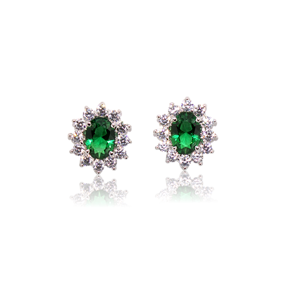 18 kt white gold stud earrings with 2.8 mm green zircon and brilliant halo – 3.00 g – Idee Preziose since 1987 Refined elegance with a touch of color: these 18 kt white gold stud earrings feature a 2.8 mm green zircon at the center, surrounded by a delicate halo of brilliant white zircons. The floral-inspired design radiates classic charm and timeless beauty. Material: 18 kt white gold Stones: Green central zircon, white zircon halo Cut: Oval center, brilliant halo Center stone size: 2.8 mm Total weight: 3.00 g Earring type: Stud Gender: Women Closure: Post and butterfly Style: Elegant, vintage, floral A luminous statement for every day or special evenings.