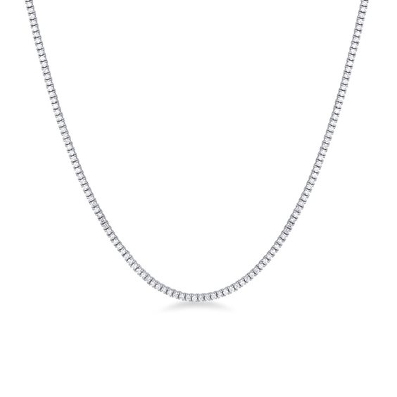 18kt White Gold Tennis Necklace for Women with Natural Diamonds G SI – 15.80 g | 3.96 ct – Idee Preziose dal 1987 A timeless symbol of elegance, this tennis necklace is crafted in 18kt white gold and adorned with 3.96 carats of natural G SI diamonds. Perfectly matched stones form an unbroken line of brilliance, ideal for elevating your everyday look or enhancing your most special occasions. Material: 18kt white gold Stones: Natural diamonds Total carat weight: 3.96 ct Color: G Clarity: SI Cut: Round brilliant Weight: 15.80 g Gender: Woman Necklace type: Tennis Brand: Idee Preziose dal 1987 Made in Italy: Yes A radiant expression of refined beauty and timeless sophistication.