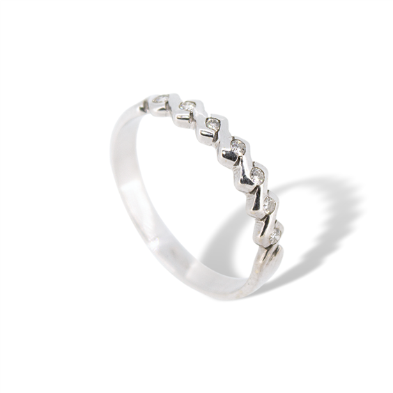 18 kt White Gold Diamond Band Ring for Women – G Color, SI Clarity, 0.10 ct – Idee Preziose dal 1987 This elegant band ring in 18 kt white gold features natural brilliant-cut diamonds totaling 0.10 carats. Its contemporary and geometric design offers a touch of originality and charm, perfect as a solo ring or to stack with others. Material: 18 kt white gold Stones: Natural diamonds Total carat weight: 0.10 ct Clarity: SI Color: G Cut: Brilliant Weight: 2.50 gr Gender: Women Brand: Idee Preziose dal 1987 Style: Modern band Occasions: Stylish gift, anniversary, promise ring, stacking ring A ring where sparkle meets design—made to shine every day