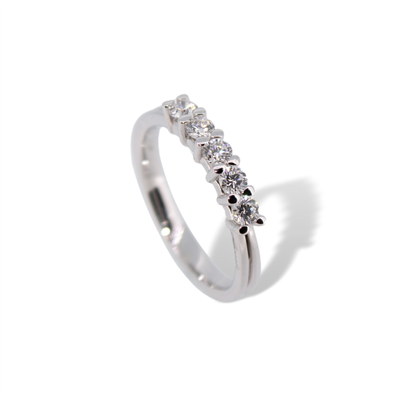 18 kt White Gold Diamond Band Ring for Women – 0.26 ct G VS – Idee Preziose dal 1987 This 18 kt white gold band ring is graced with 0.26 ct of natural brilliant-cut diamonds in G color and VS clarity. A refined symbol of everlasting elegance and daily sophistication. Material: 18 kt white gold Stones: Natural diamonds Total carat weight: 0.26 ct Clarity: VS Color: G Cut: Brilliant Weight: 2.80 g Gender: Women Brand: Idee Preziose dal 1987 Style: Classic band ring Occasions: Engagement, anniversary, special gift A radiant reminder of timeless love.