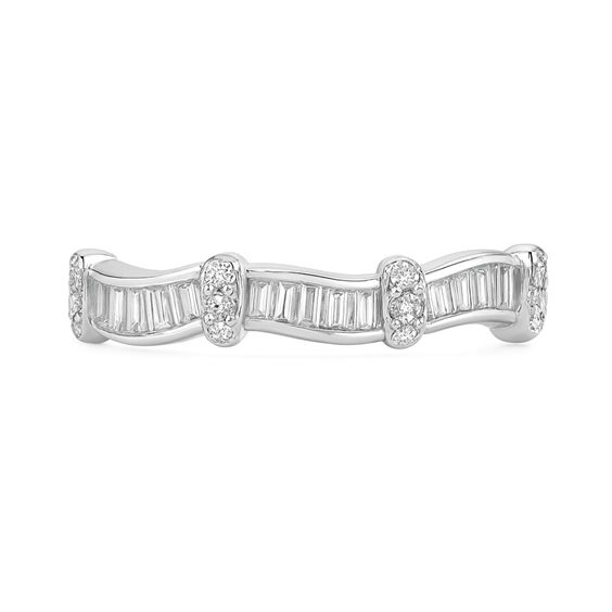 Full eternity white gold diamond band – Idee Preziose since 1987 A jewel that embodies perfect brilliance and refined design. This 18 kt white gold full eternity ring features a sophisticated pattern of brilliant-cut diamonds (0.05 ct) and carré-cut diamonds (1.45 ct), totaling 1.50 ct, set all around for endless sparkle. With a weight of approximately 4.00 g, it represents the essence of contemporary elegance and understated luxury. Material: 18 kt white gold Weight: approx. 4.00 g Gender: Woman Stones: Natural diamonds Total carat weight: 1.50 ct (0.05 ct brilliant-cut + 1.45 ct carré-cut) Cuts: Round brilliant and carré Color: G Clarity: VS A timeless masterpiece that celebrates light in every detail, signed Idee Preziose since 1987.