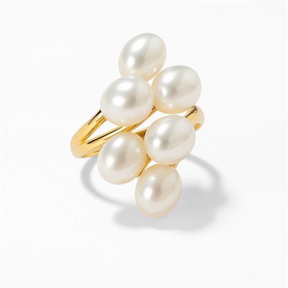 18 kt Yellow Gold Women’s Ring with Six 6.5 mm Natural Pearls – 7.80 g – Size 18 – Idee Preziose dal 1987 A sculptural and refined jewel that highlights the natural beauty of pearls through a harmonious and modern design. This 18 kt yellow gold ring features six 6.5 mm natural pearls, elegantly arranged in a multi-level composition that catches the light from every angle. The smooth, enveloping gold setting enhances the contrast between the warmth of the metal and the purity of the pearls. A timeless piece that embodies understated luxury and contemporary femininity, perfect for women who appreciate elegance with a distinctive touch. Material: 18 kt yellow gold Main stones: Natural pearls Pearl diameter: 6.5 mm Weight: 7.80 g Size: 18 Gender: Women Brand: Idee Preziose dal 1987 Style: Multi-pearl design Occasions: Ceremony, elegant event, important gift A radiant and sophisticated ring that celebrates the natural allure of pearls — a masterpiece of Italian craftsmanship and timeless elegance.