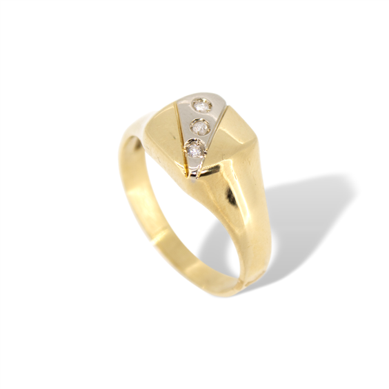 Men’s chevalier ring in 18 kt yellow gold with natural G VS diamonds and white gold details – 4.80 g – 0.09 ct – Idee Preziose since 1987 A timeless classic with a geometric twist: this chevalier ring in 18 kt yellow gold features a sharp-edged design and a contrasting white gold insert, showcasing three round brilliant-cut natural diamonds. A refined, masculine jewel for the man who values understated elegance. Material: 18 kt yellow and white gold Stones: Natural diamonds Total carat weight: 0.09 ct Color: G Clarity: VS Cut: Round brilliant Weight: 4.80 g Gender: Men Brand: Idee Preziose since 1987 Style: Geometric chevalier Occasions: Special gift, anniversary, everyday elegance Strong lines, subtle brilliance, and timeless class.