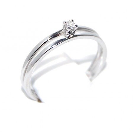 Solitaire ring in 18 kt white gold with diamond. The power plant is made of a diamond. The diameter of the central unit is 2.6 mm. The weight of the ring is 2.40 gr.
