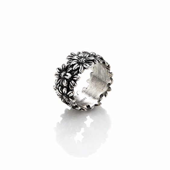 MARGHERITE BUTTON RING 925 Silver Ring _Maxials Collection - Sincere flowers that warm the heart. It is our spring to wear, silver petal horizon and simple stories in infinite green. Weight: 8 gr. Height 1.2 cm. _With handmade in Italy.