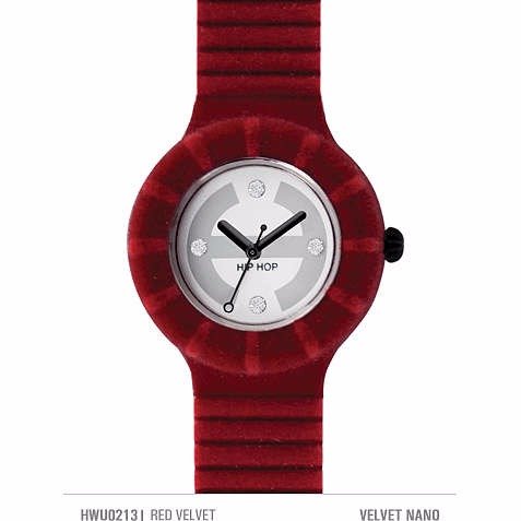 Hip hop watch strap with red velvet, nano dial, with glitter in 4 cardinal points.