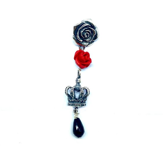 Single earring Madame Black Woman in Silver Onice MBORFARRCORGON