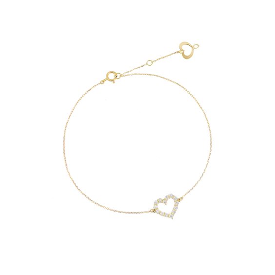 Bracelet with central heart with pavé diamonds made in 18k yellow gold. The heart measures 10 x 10 mm. The bracelet can be adjusted in three sizes: 16.5 cm, 17.5 cm and 19 cm. Maman heart signature logo charm. Clasp fastening.