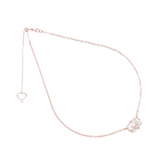 Necklace made in 925 silver with rose gold plating in high thickness and strong resistance. The necklace has a central transparent Rock Crystal whose bezel is composed by tiny intertwined Maman hearts. The Rock Crystal is 11 mm x 14 mm. The necklace has a Maman perfored heart signature logo on one end. The necklace can be adjusted from a minimum of 33,5 cm up to a maximum of 42 cm due to the sliding ball. Clasp fastening.