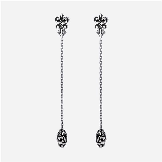 Pendant earrings cm. 9 silver made up of "shiva lingam" with hand-engraved lobed perforated element