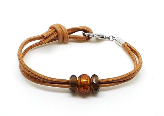 LEATHER AND STEEL BRACELET WITH CRYSTAL DROPS