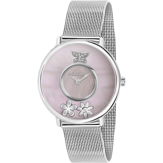 Watch Only Time From Woman Of Morellato Of Collection Scrigno D Amore. Model With Steel Case The Size Of 36.5X34Mm, Mop Color Dial And Mineral Glass. The Strap Is Knitted Steel Mesh Of Steel Color With Clip And Hook. Clock With Mvt Vj20 And Water Resistance Of 5 Atm.