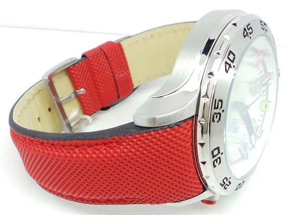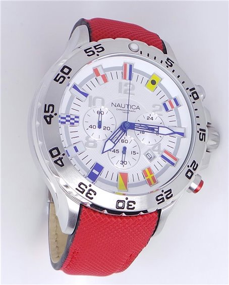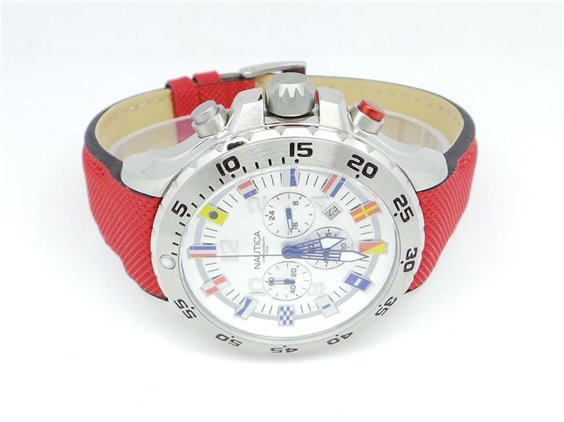 Quartz chronograph, water resistant 100mt, 48mm steel case, technical fabric strap, dial with nautical flags.