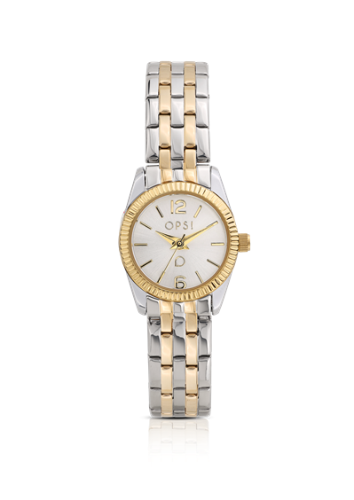 OpsObjects OPSPW-1145-2950 – Two-tone stainless-steel and gold quartz watch with silver dial A watch that combines classic sophistication with modern refinement. The OPSPW-1145-2950 model by OpsObjects features a polished stainless-steel round case accented by a gold-tone ridged bezel, reflecting light with warmth and subtle luxury. The silver dial is elegantly detailed with linear hour markers, crystal accents, and gold-tone hands, creating a perfect balance of brightness and style. The two-tone bracelet, alternating polished steel and gold links, adds depth and timeless harmony to the design. Powered by a reliable quartz movement, this watch offers precision and versatility, making it an ideal accessory for both everyday wear and elegant occasions. Technical data Collection: OPS! Objects Model / Reference: OPSPW-1145-2950 Movement: Quartz (two hands + seconds) Case: Two-tone stainless steel (silver and gold finish) Case shape: Round Case diameter: approx. 30 mm Case thickness: approx. 7 mm Glass: Mineral Dial: Silver with linear indices, crystal markers, and gold-tone hands Bezel: Gold-tone ridged stainless steel Bracelet: Two-tone stainless-steel and gold-plated link bracelet Strap width: 12 mm Clasp: Adjustable deployant clasp Water resistance: 3 ATM (splash resistant) Warranty: 24 months international OpsObjects OPSPW-1145-2950 embodies timeless balance and subtle brilliance — where the strength of steel meets the warmth of gold, creating an accessory that radiates elegance in every detail.