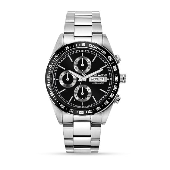 MAN CLOCK, CHRONOGRAPH, AUTOMATIC, BLACK SQUARE, BLACK GLASS, DOUBLE DATE, OYSTER MODEL BRACELET.