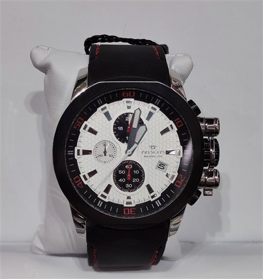 Watch PVD treated steel with special 45mm, black PVD bezel, chronograph quartz movement, dial engraved with working beehive-shaped crown adjustment with lever interlocking, rubber strap with buckle closure customized black, water resistant 10atm