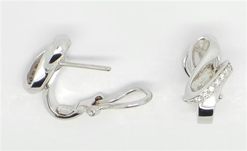 Earrings in 18 kt white gold, 9.6 g, 14 round brilliant cut diamonds totaling 0.10 ct, G color, SI purity.