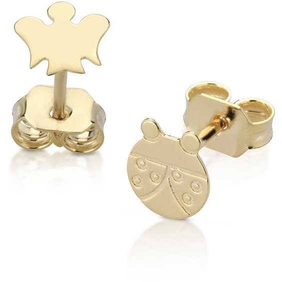 Little Girl's Earrings By Roberto Giannotti From the Babies Collection. Earrings With Angel And Ladybug In Yellow Gold. Dimensions: Angel With Base 0.7 Cm And Height 0.7 Cm And Ladybug 0.6 Cm