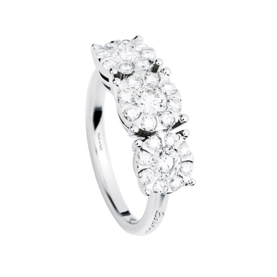 Salvini ring in white gold 18 kt collection daphne precious diamond 0.86 kt. For important occasions, comes the collection of Daphne Precious jewels composed of a set in white gold and diamonds from the very elaborate design. The ring shows off an important center stone bounded by a crown of diamonds and the shank embedded; the collierino is characterized by a double chain adorned with small diamonds and earrings effect lights compliment. To expand the range, the most important models and articulated by the imaginative work of great visual impact and exceptional brightness, which makes this jewelry collection Salvini a must have for every woman.