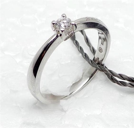 18K white gold solitaire ring with brilliant cut diamond 0.1 ct G