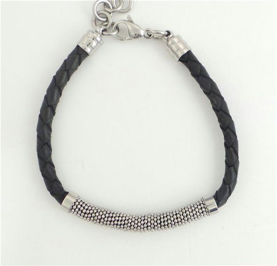 Men's Bracelet of character, the central steel balls, with faux leather cord. Lobster clasp closure with chain to make it longer. Maximum size with 23 cm chain.
