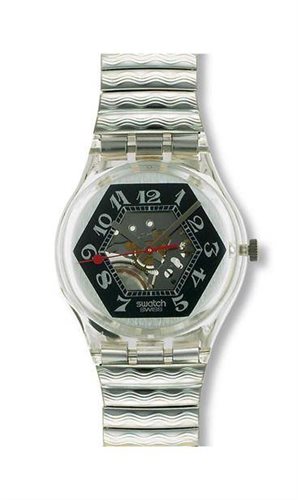 SWATCH SILVER AND BLACK QUADRING WATCH WITH SKELETON NUMBER OF ARABS ELASTIC BRACELET METAL COLOR STEEL
