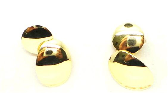 TWINS IN YELLOW GOLD 750/°°° POLISHED OVAL shaped PROCESSING MEASURE 7.5 MM X 12.5 MM and the smallest CIRCLE ø 10 MM. REQUIRES CUFF DESIGNED with 4 holes. WEIGHT 5.20 G. 1.5 MM THICK