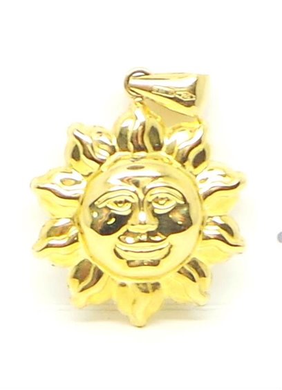 PENDING IN GOLD 750 / °°° SHAPED FACE OF THE SUN SHINE AND RAYS SATIN ONE HAND FROM OTHER tuttto POLISHED MEASURE ø MM 26.50. THICKNESS 12 MM WEIGHT GR 5.8.LA contromaglia WHERE PASS THE CHAIN ​​HAS A ø OF 6 MM.