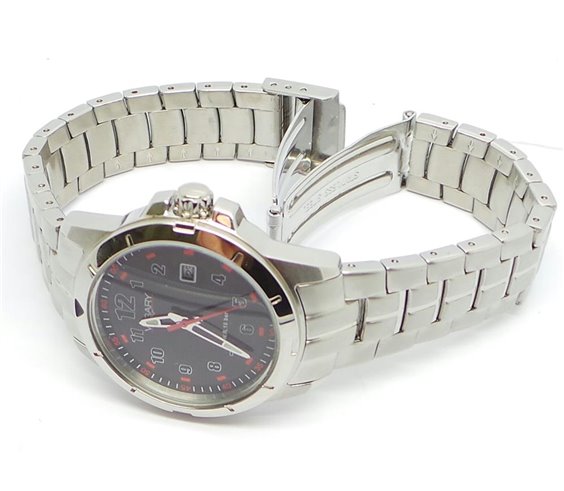 WATCH DONNA-GUY TIME ONLY QUARTZ MOVEMENT STAINLESS STEEL BLACK DIAL CHRONOGRAPH MINUTES AND SECONDS WITH FLUORESCENT RED COLOR INDICES.ROUND SHAPE with a DIAMETER MEASUREMENT DATE 31 MM, thickness 7 MM, weight GR 75.14 MM WIDE STRAP. 100 M resistant MINERAL GLASS. STAINLESS STEEL SCREW CASEBACK, SNAP CROWN.