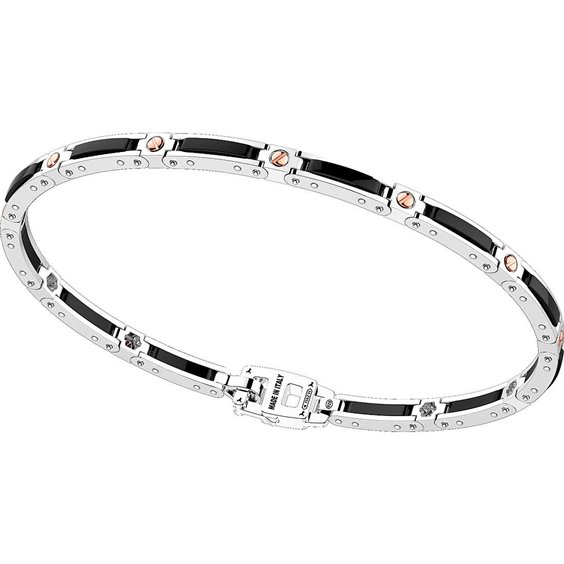Zancan Men's Bracelet Set Of 14.00Gr Silver 925, 0.10Gr Gold 18Kt And Black Ceramic. Standard Size 20,50 Cm. The Closure Is A Carabiner. Made in Italy