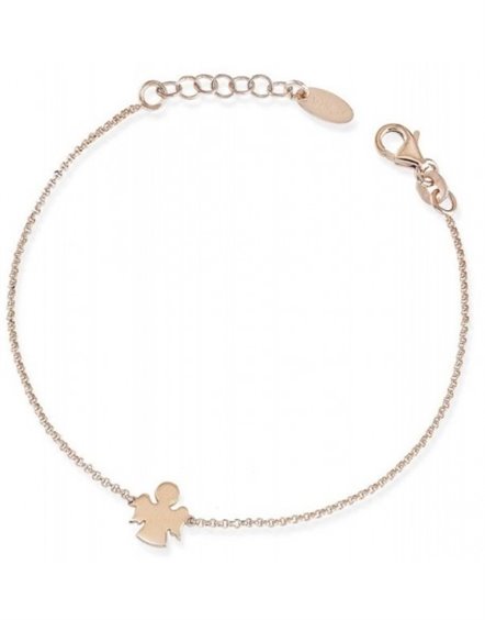 925 / °°° Pulsera de plata con acabado rosado con angel; longitud personalizable de 16 a 18 cm