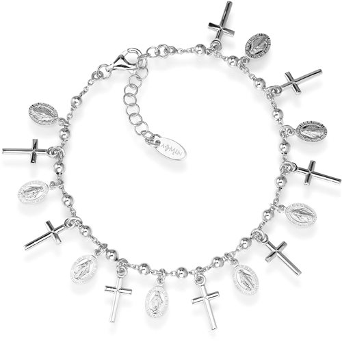 Amén Pulsera para mujer de la colección Prega, Love. Pulsera de plata de color rodio 925 con encanto cruzado. Joya de la longitud de 16 3cm y altura de Charm 1cm, Milagrosa Ø 1cm. La pulsera Reference Is BrcmbThis se enviará con la garantía de la caja original Amen.
