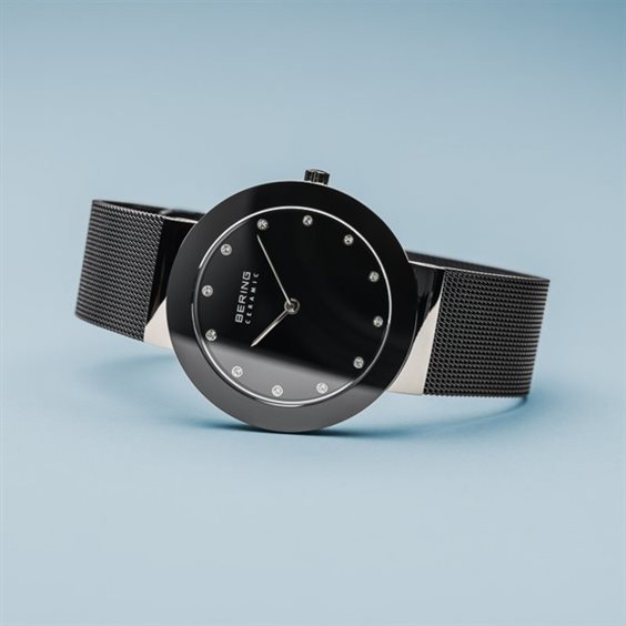RELOJ BERING ESTUCHE NEGRO ACERO NEGRO CUADRADO CON CRISTAL ÍNDICE NEGRO CERÁMICA NECK BRACELET MILANO COLLAR