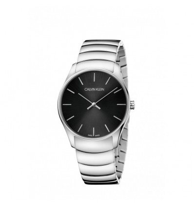 La garantía internacional de dos años de Calvin Klein y la elegante caja original se suministran con el reloj de cuarzo Calvin Klein Classic Too de 38 mm K4D2114V impermeable hasta 30 metros. La esfera redonda con un fondo negro protegido por un vidrio mineral tiene una excelente legibilidad gracias a los índices de acero en relieve como las dos manos que sobresalen muy bien. Su muñeca lleva una elegante pulsera de acero inoxidable con cierre desplegable. Almohadilla y corona de presión de bobinado