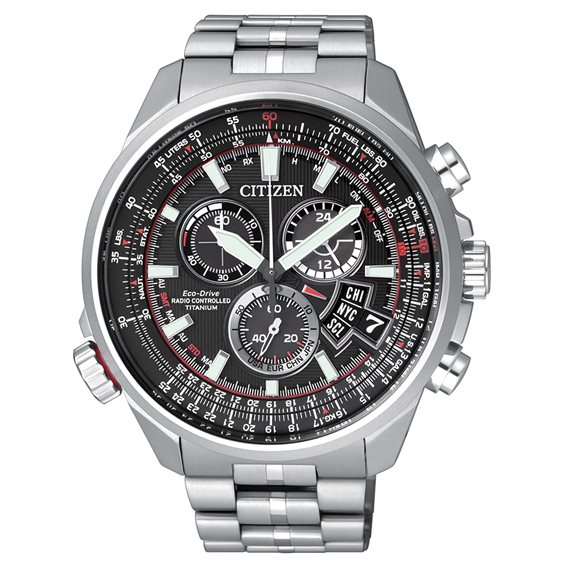 Reloj Citizen, Colección Piloto, Movimiento Eco-Drive. Cronógrafo. Radio de 5 canales controlada por radio con recepción de señal en todo el mundo. Estuche y brazalete SuperTitanium. Cristal de zafiro resistente a los arañazos. Resistencia al agua 20 bar, 1/5 s cronógrafo con calendario perpetuo, tamaño de la caja 43 mm, resistencia al agua 20bar, doble alarma, género masculino.