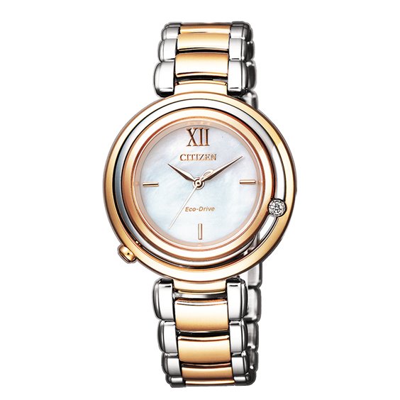 Citizen Watch para mujeres con el sistema de carga EcoDrive que te permite nunca tener que recurrir a la asistencia para cambiar la batería. Elegante y refinado en la unión de los colores del oro rosa, amarillo y blanco. Para endulzar la imagen, un diamante. Producto nuevo, inmaculado y original, provisto con un manual de instrucciones y una garantía Citizen de 24 meses.