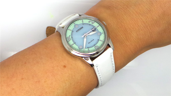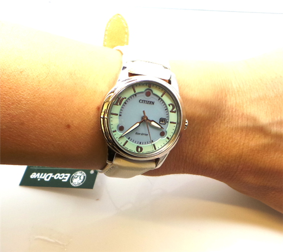 Reloj ciudadano, movimiento de la impulsión del eco (con carga ligera infinita) con una carga de 210 días. caja de acero, pulsera de la correa de cuero. wr 1 bar.